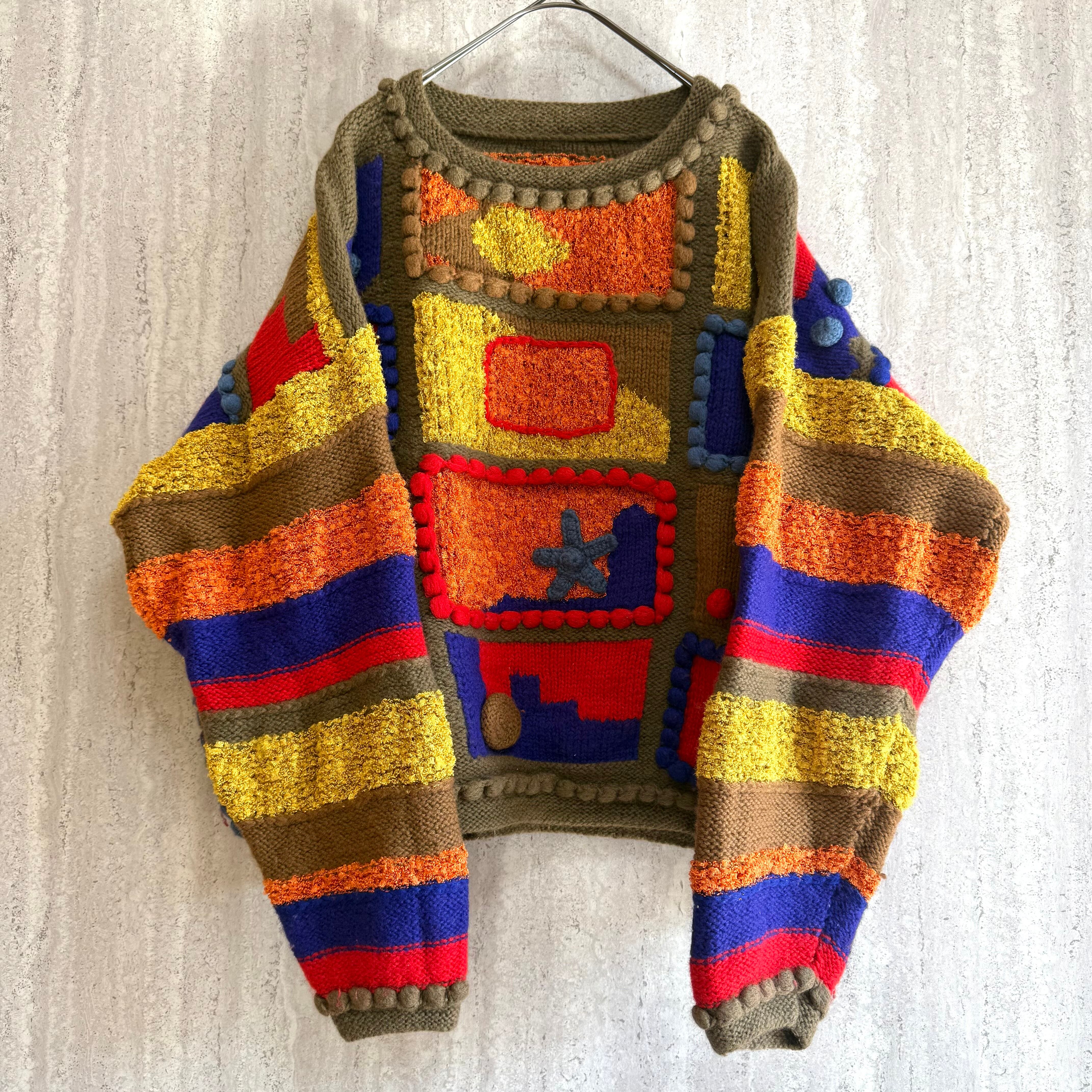 90s Multi-Color 3D Patchwork Knit / 立体編み パッチワーク 3Dニット