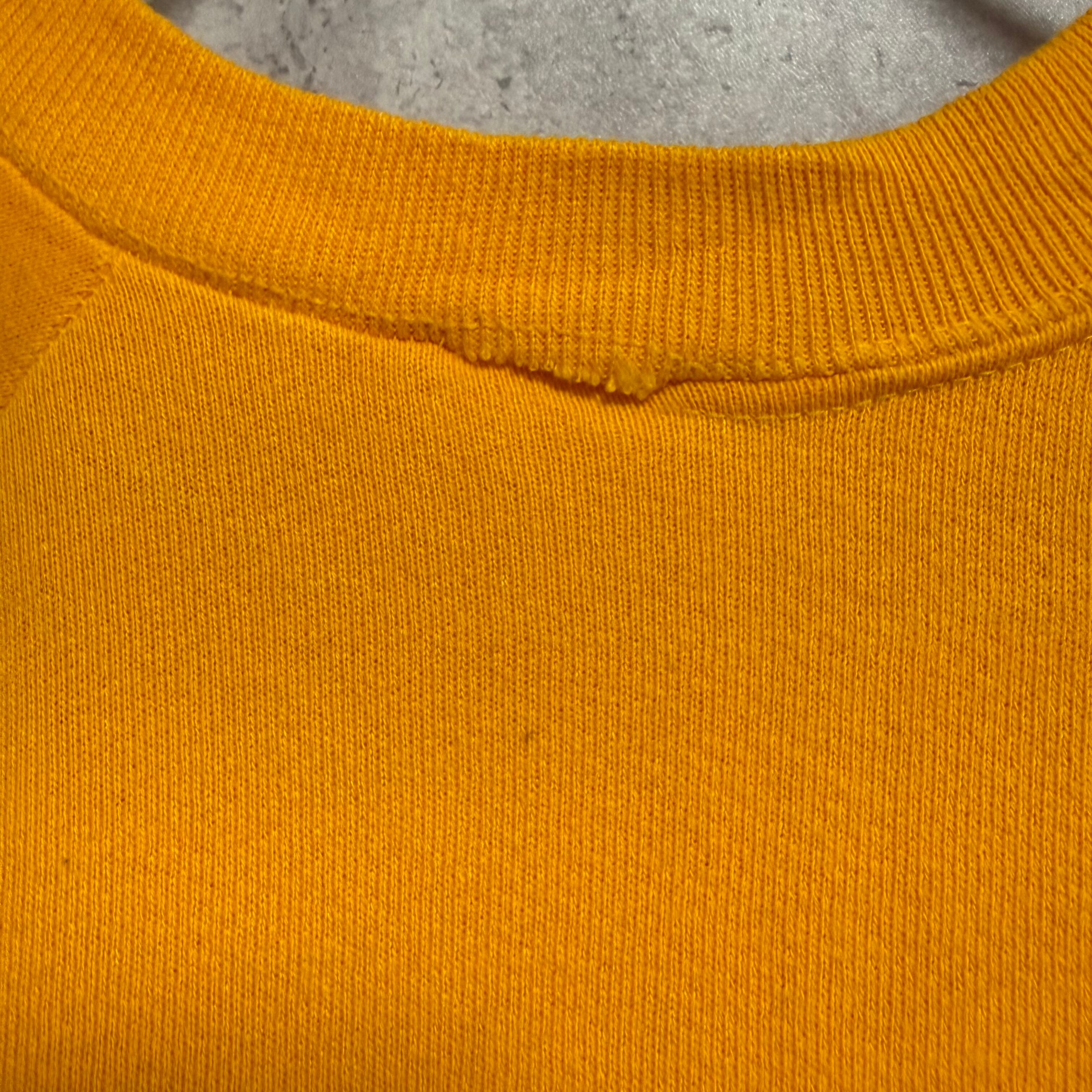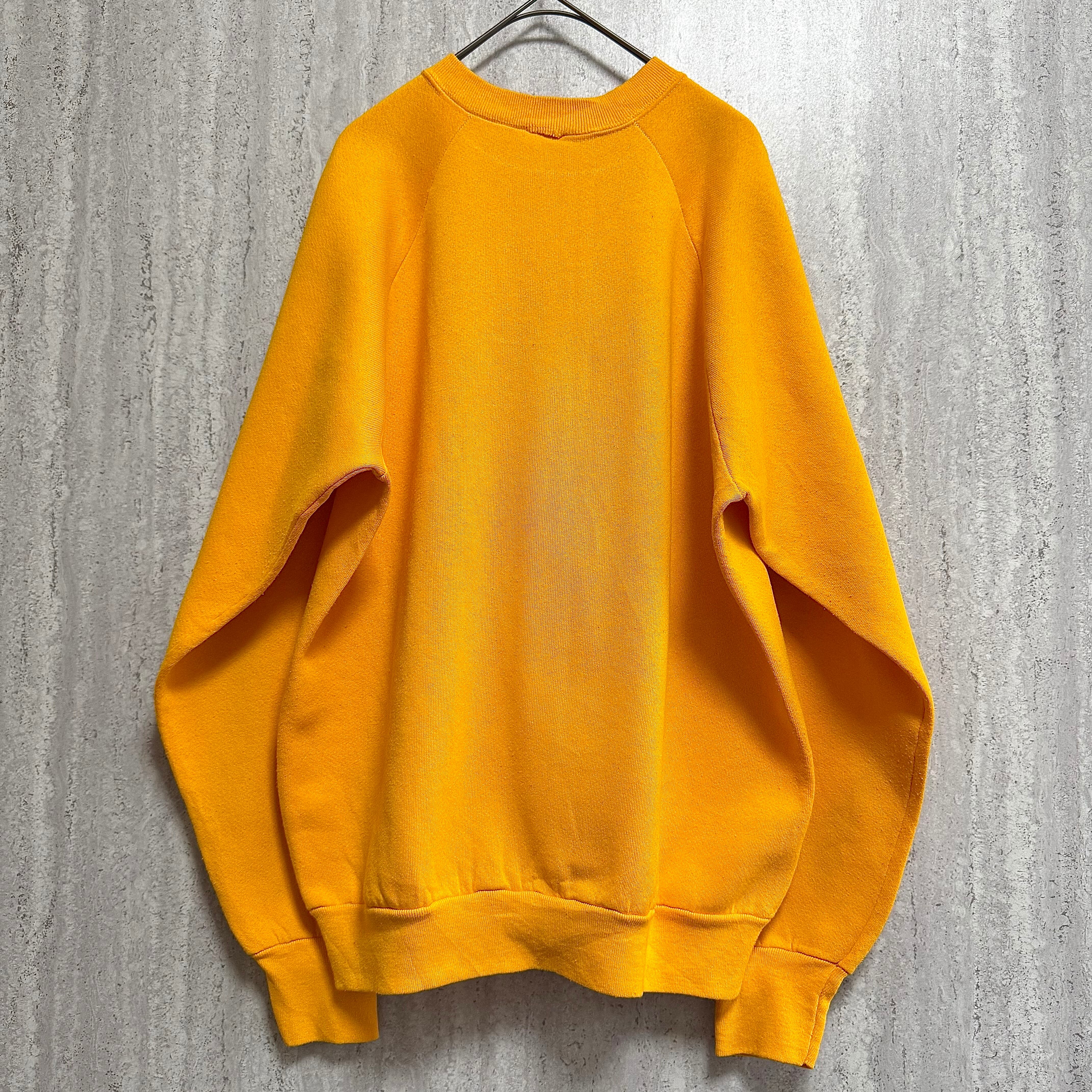 古着らしい鮮やかなマスタードイエローが目を引く、90年代頃のヴィンテージスウェットです。