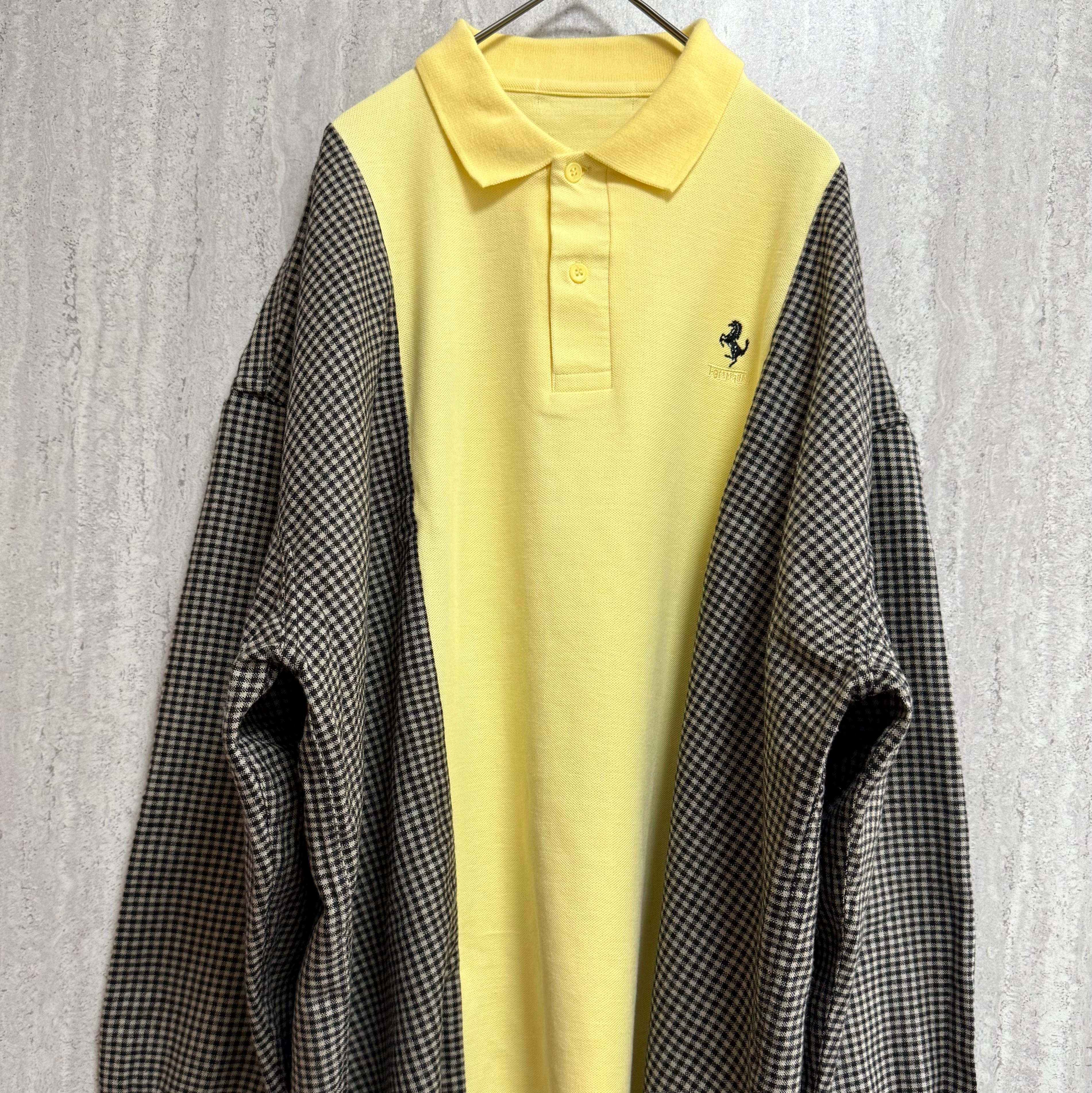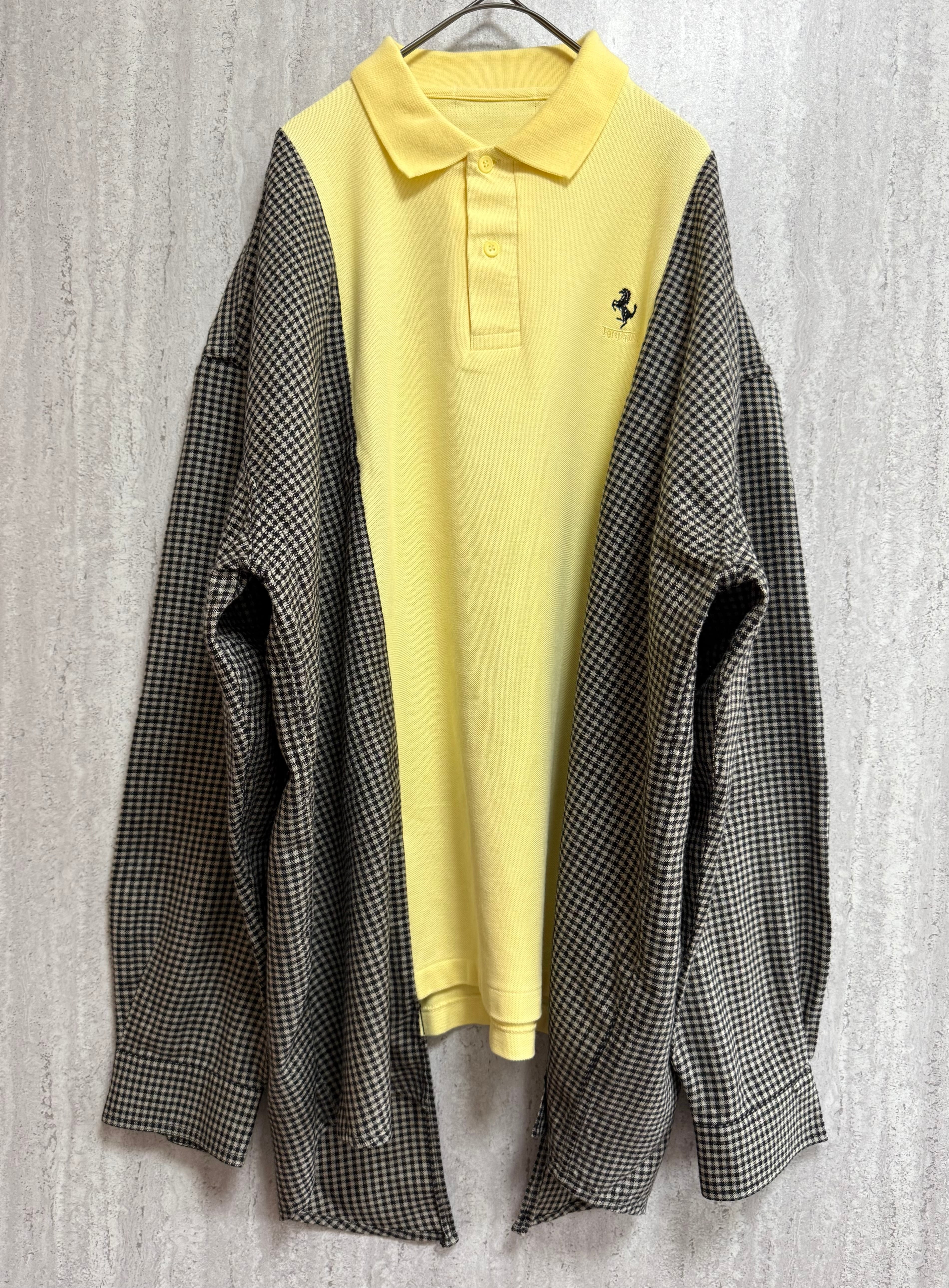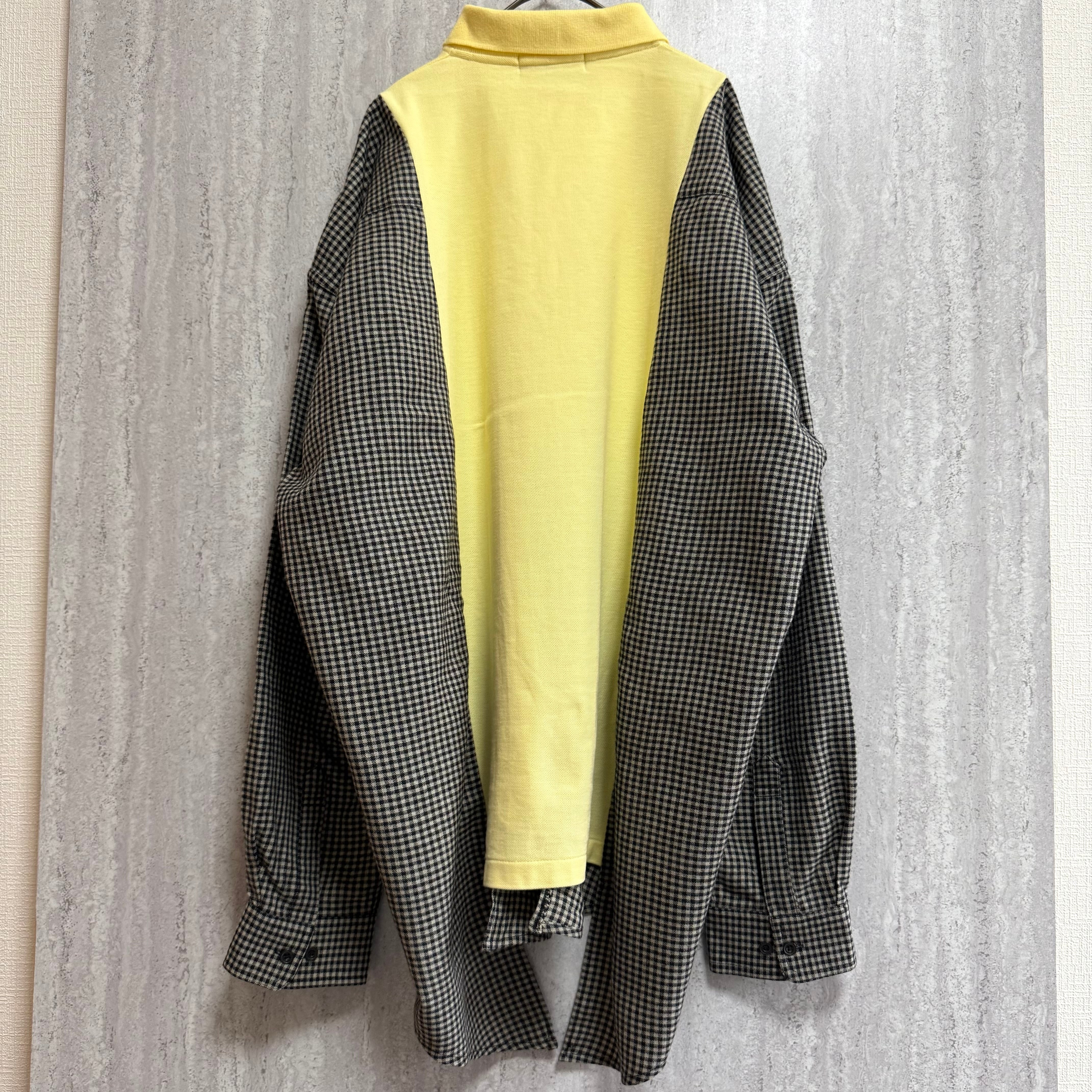 柔らかなペールイエローのポロシャツと、定番のギンガムチェックネルシャツを大胆に再構築したドッキングアイテムです。